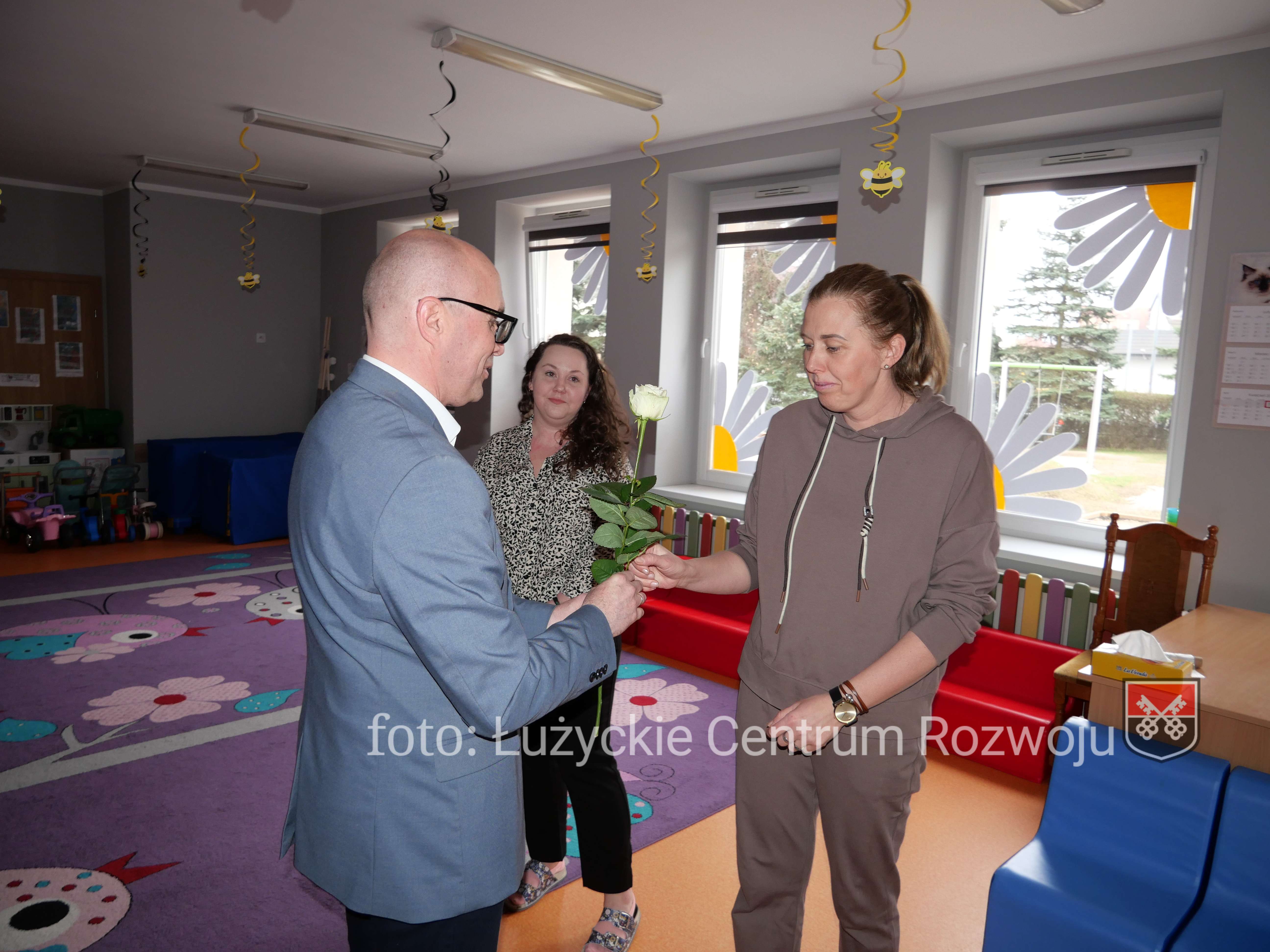 Nieprzypadkowo spotkanie odbyło się właśnie teraz – 4 kwietnia to Dzień Opiekuna Małego Dziecka. Podczas spotkania Burmistrz wyraził wdzięczność za codzienny trud oraz podkreślił, jak ważną rolę pełnią opiekunowie w życiu lokalnej społeczności. W dowód uznania pracownicy żłobka zostali symbolicznie obdarowani.